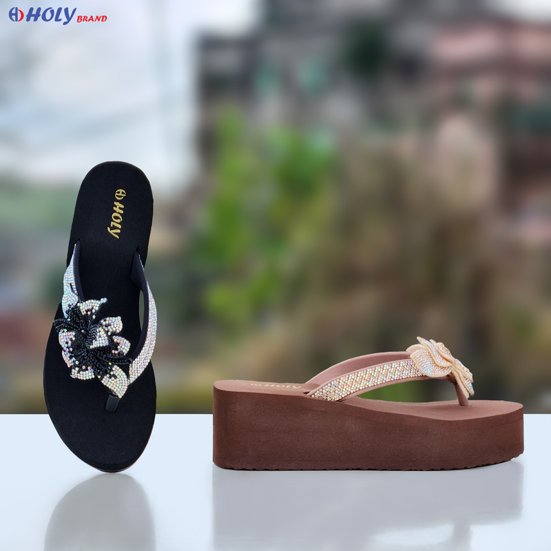 Holy Brand প্রিমিয়াম ওয়েজ স্লিপার তৈরি হয়েছে ফ্লোরাল ক্রিস্টাল ডিজাইনসফট ইনসোল দিয়ে,